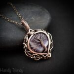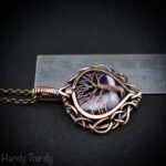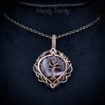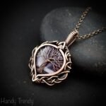 This beautifully handcrafted tree of life pendant is made of pear shape star amethyst stone which is wrapped in pure copper wire in free-flow style. This pendant is oxidized for an antique look and polished to highlight the details of the wirework.