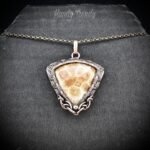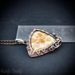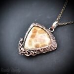 Yellow fossil coral pendant, Copper wire wrapped jewelry, Unique handmade birthday Gift, One of a kind necklace, Artisan boho jewelry,