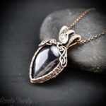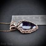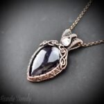 This beautifully handcrafted pendant is made of star amethyts cabochon and white cubic zirconia which is wrapped in pure copper wire. This pendant is oxidized for an antique look and polished to highlight the details of the wirework.