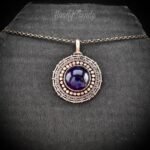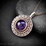 This beautifully handcrafted endless wire wrap wheel pendant is made of copper wire, copper balls and amethyst stone which is wrapped in a bezel setting. This pendant is oxidized for an antique look and polished to highlight the details of the wirework.