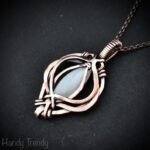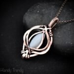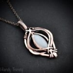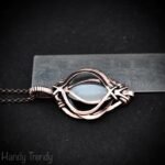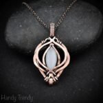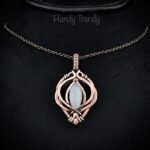 This beautifully handcrafted pendant is made of marquise shape white moonstone which is wrapped in pure copper wire in free-flow style. This pendant is oxidized for an antique look and polished to highlight the details of the wirework.