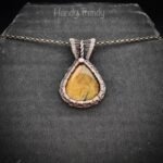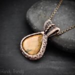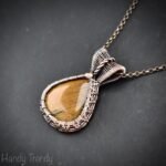 This beautifully handcrafted pendant is made of tiger eye cabochon which is wrapped in pure copper wire, This pendant is oxidized for an antique look and polished to highlight the details of the wirework.