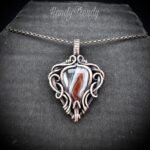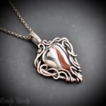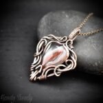 This beautifully handcrafted pendant is made of orange botswana agate which is wrapped in pure copper wire in free-flow style. This pendant is oxidized for an antique look and polished to highlight the details of the wirework.