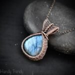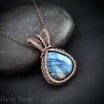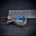 This beautifully handcrafted pendant is made of pure copper wire and blue flash labradorite cabochon, This pendant is oxidized for antique look and polished to highlight the details of the wirework.