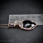 This beautifully handcrafted pendant is made of briolette cut black onyx which is wrapped in pure copper wire with wave design. This pendant is oxidized for an antique look and polished to highlight the details of the wirework.