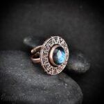 This beautifully handcrafted endless wheel ring is made of copper sheet, wire and labradorite stone wrapped in a bezel setting. This is an adjustable ring and you can adjust this ring according to your finger size.