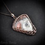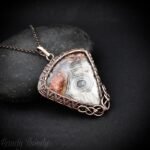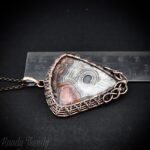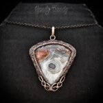 This beautifully handcrafted pendant is made of pure copper wire and crazy lace agate cabochon wrapped in cage style, This pendant is oxidized for antique look and polished to highlight the details of the wirework.