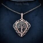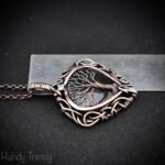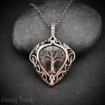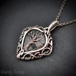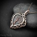 This beautifully handcrafted tree of life pendant is made of pear shape Moss agate which is wrapped in pure copper wire in free-flow style. This pendant is oxidized for an antique look and polished to highlight the details of the wirework.