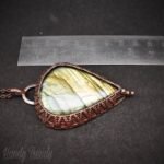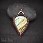 This beautifully handcrafted pendant is made of green flash labradorite cabochon which is wrapped in pure copper wire with adorable weaving designs. This pendant is oxidized for antique look and polished to highlight the details of the wire work.