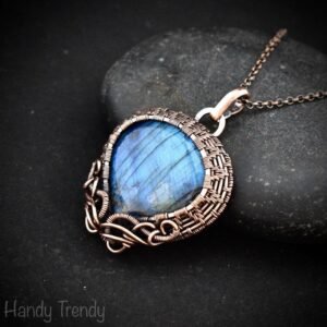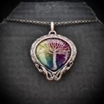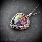 This beautifully handcrafted tree of life pendant is made of pure copper wire and rainbow solar quartz cabochon wrapped in curly cage style, This pendant is oxidized for antique look and polished to highlight the details of the wirework.