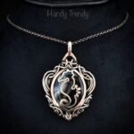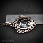 This beautifully handcrafted seahorse fish pendant is made of oval shape black banded agate stone which is wrapped in pure copper wire in free-flow style. This pendant is oxidized for an antique look and polished to highlight the details of the wirework.