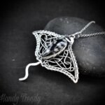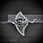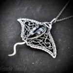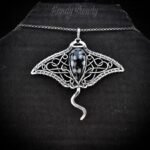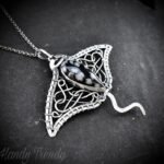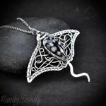 This beautifully handcrafted manta ray pendant is made of 925 sterling silver wire and Snow Flake Obsidian stone wrapper in bezel setting. This pendant is oxidized for an antique look and gives a matte finish to highlight the details of the wirework.