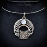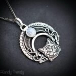 This beautifully handcrafted American shorthair pendant is made of 925 sterling silver wire and rainbow moonstone wrapped in a bezel setting with a Ragdoll cat face. This pendant is oxidized for an antique look and polished to highlight the wirework details.