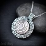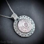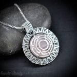 This beautifully handcrafted Hecate’s wheel pendant is made of 925 sterling silver wire and rose quartz gemstone with a wire-made Hecate wheel design on top. This pendant is oxidized for an antique look and polished to highlight the details of the wirework.