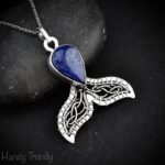 Mermaid tail pendant, Blue lapis lazuli necklace, 925 sterling silver jewelry, Unique handmade gift, Sea animal, One of a kind piece