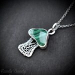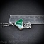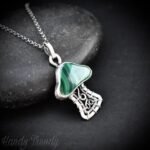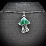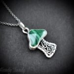 This beautifully handcrafted mushroom pendant is made of 925 sterling silver wire and amethyst stone wrapped in a bezel setting with swirls and curls design. This pendant is oxidized for an antique look and polished to highlight the details of the wirework.
