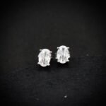 These beautifully handcrafted oval stud earrings are made of white cubic zirconia wrapped 925 sterling silver.