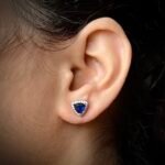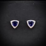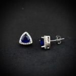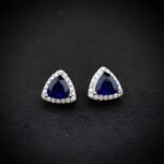 These beautifully handcrafted triangle stud earrings are made of blue and white cubic zirconia wrapped 925 sterling silver.